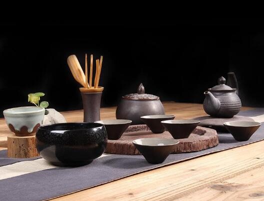 現(xiàn)代功夫茶具通常包括茶盤、蓋碗或紫砂壺、公道杯、茶道組、茶荷、品茗杯、杯托等。